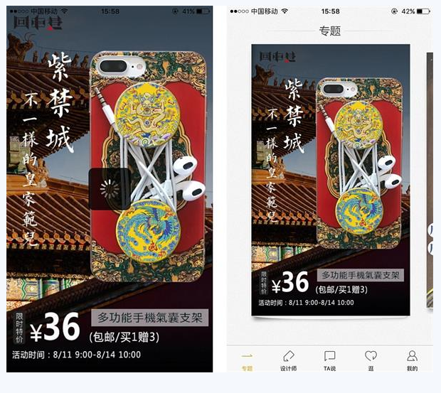 如果你的应用展示的Banner图是类似专题性质的。图片只是一个参考作用,用户是不能从大图看到更多商品信息,需要更多文字说明来辅助阅读,图片比例选择使用16:9。例如旅游的产品图片就适合选用16:9。比如首页你要做一个欧洲的路线,你只放巴黎的埃菲尔铁塔的图片,那么提供信息量是远远不够的,必须加上德法意深度10日游的文字说明。例如造作展示的都是家居套装专题,而不是具体某个家居的单品。所以使用16:9 Banner图片比例。