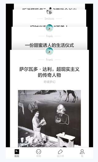 另外一种大卡片设计就是纵向卡片,最美有物的首页卡片是纵向滑动的。同横向滑动相比,滑动的易用性略好于横向滑动,因为用户也更习惯于上下滑动。纵向滑动的信息承载度更低于横向滑动,因为需要页面需要留出足够的区域,去放置更多前后卡片,去营造卡片的上下立体感。这样的立体设计可以给予用户更好的位置感。因为设计可用区域小,所以更多通过精心标题设计去吸引用户点击。