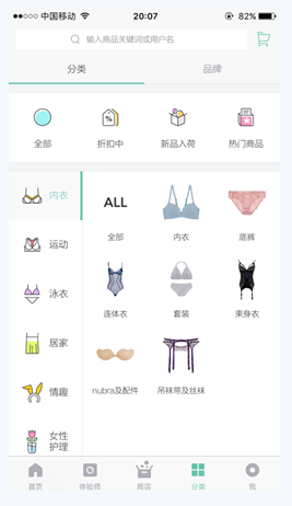 因为垂直类 电商的商品品类有限。所以很多时候用户甚至不知道可以搜什么关键词,去寻找他想要的商品。所以垂直类电商必须设计商品的分类页面,对于用户来说这是一种商品的重要检索形式。同时也让用户知道你的平台有哪些商品可以购买。氧气的商品分类有二级,所以采用的是类似B2C综合平台的品类设计形式,小图+文字形式显得非常的紧凑。这种设计的好处是在足够小的面积内,可以查看到尽可能多的信息。