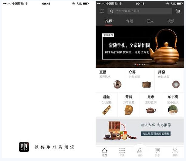 东家作为匠人聚集的地方,专门售卖各种手艺人的亲手制作的各种艺术品。电商已经发展很多年了,该有的东西都已经有。匠人,手艺,消费升级,工匠精神,这些词虽是刚刚热起来,但手艺人,还有他们的作品,是一直就存在的,靠线下或者着其他线上平台,或家传或兼职,他们一直活着。东家的出现让他们多了一个选择。东家不仅仅是电商产品,也包含着对传统手艺的尊重。