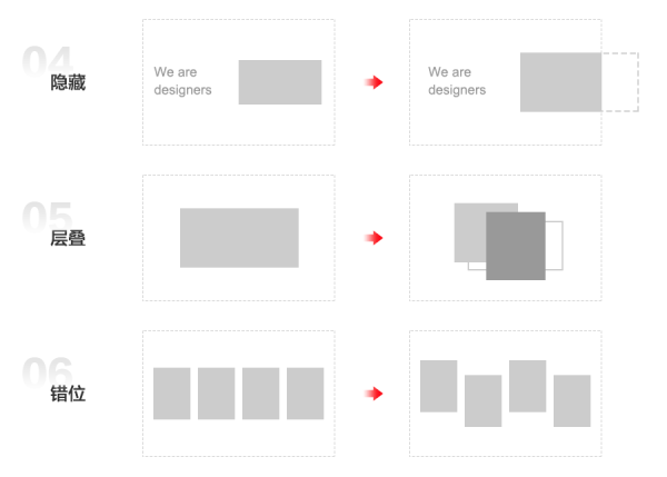 将图形、图片、文字等信息进行层叠,打破传统的左右、上下布局,增加画面的透视与层次关系。