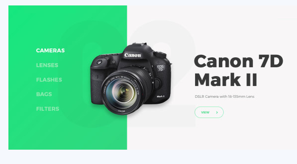下图:相机图片在两个模块的中间,从绿色背景模块延伸到浅灰色模块,将模块中间死板的分割线去除,完美的过渡方案。