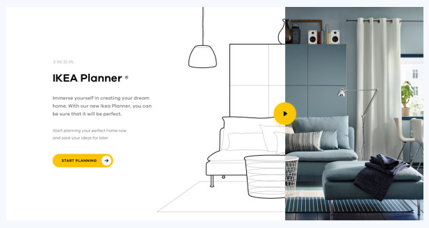 △利用黄色的播放图标,让左边的线描图与右侧实景图有较好的过渡,同时也成为画面的点睛之笔。