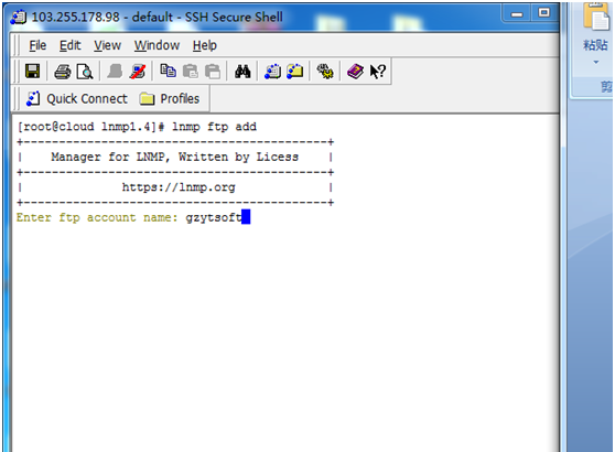 3、通过命令lnmpftpadd来添加FTP账号和密码